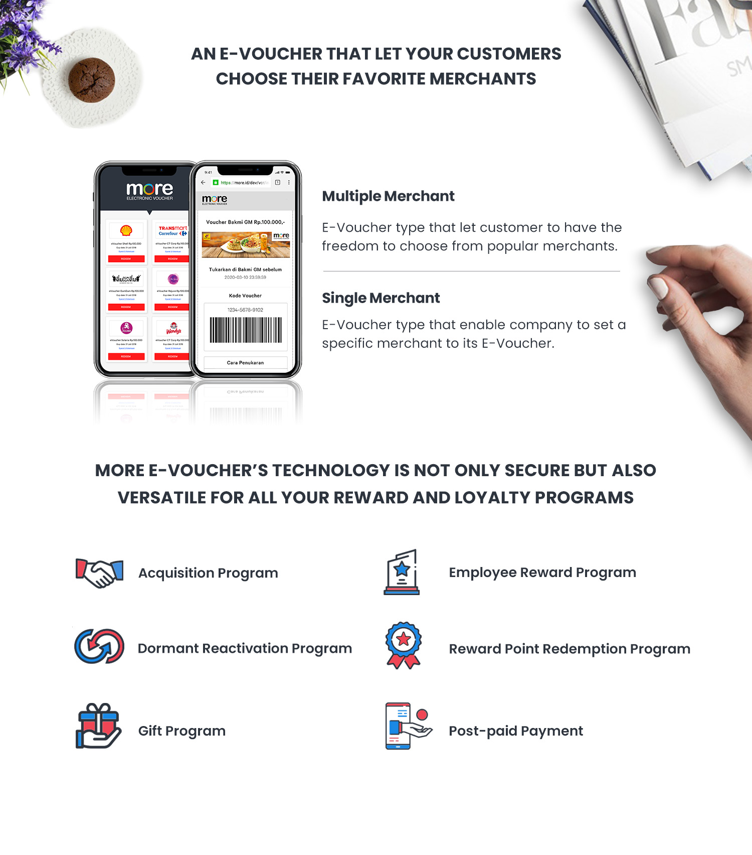 MORE's Universal Voucher is a breakthrough in electronic voucher system. It enables your customers to choose the eVoucher he/she likes most with a seamless flow to make it your gift a truly rewarding experience.